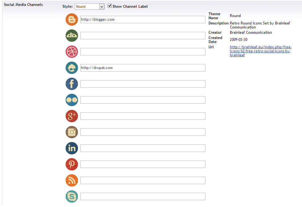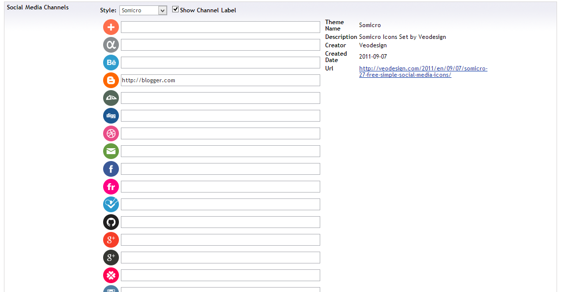 Creates a DataType for Social Media Channels and displays a list of channels based on icon theme. various themes are taken from the community.